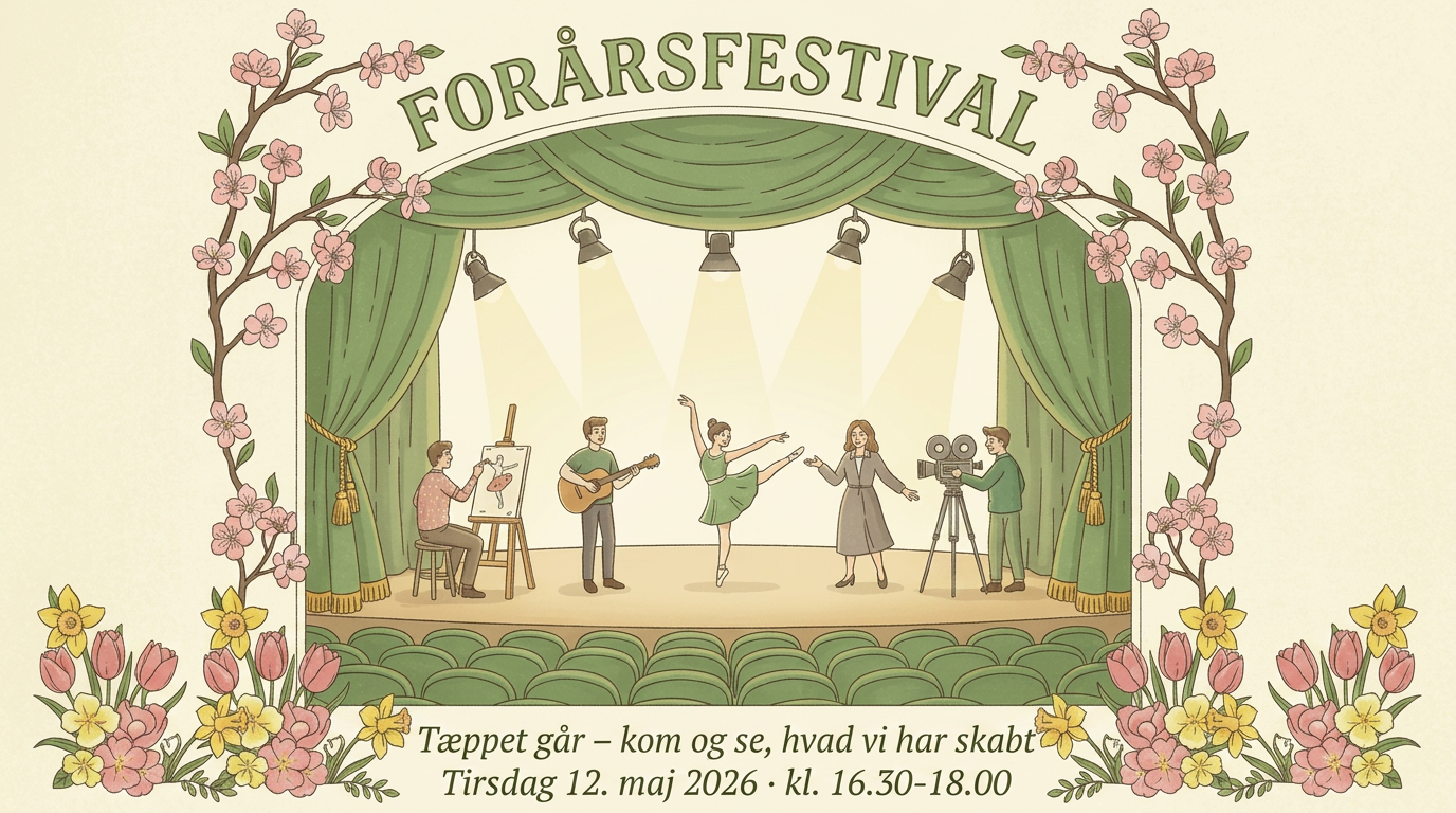 Kom på besøg tirsdag d. 12. maj kl. 16.30 - 18.00 og oplev hvad vores kunstneriske hold har arbejdet med i løbet af…